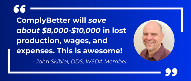 Save money and time on HIPAA, OSHA/WISHA, infection control requirements and more with ComplyBetter — WSDA's online, on-demand dental compliance service.